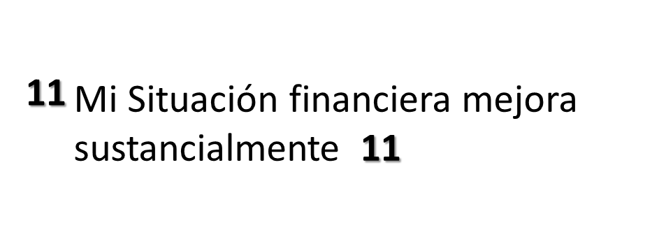 Por ejemplo: Mi situación económica mejora sustancialmente. Experimento una relación de pareja amorosa. La salud está presente en mi vida. Mis proyectos son exitosos. Y así, cualquier cosa que desees escribir.